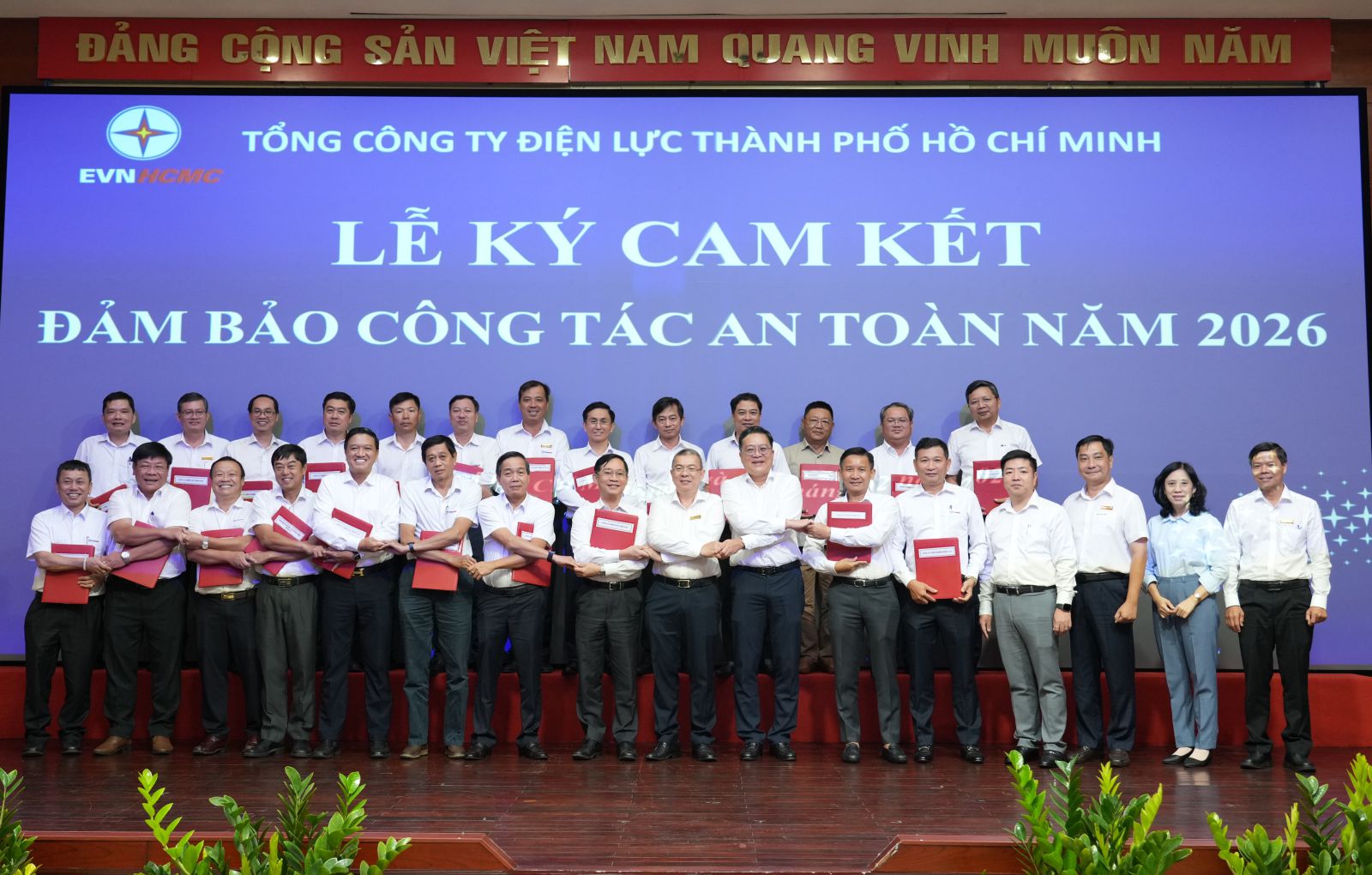 Vừa qua, ngay sau cuộc họp giao ban điều hành hoạt động sản xuất kinh doanh tháng 02, Tổng công ty Điện lực TPHCM (EVNHCMC) tổ chức Lễ ký cam kết đảm bảo an toàn năm 2026 giữa lãnh đạo Tổng công ty và lãnh đạo các đơn vị trực thuộc.